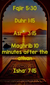Home EVENT ANNOUCEMENT SUBSCRIBE TO OUR MAILING LIST Daily Iqamah Times JUMUAH (FRIDAY) PRAYER Khutba (Sermon) at 1:15 PMIqamah (Prayer) at 1:45 PM Click here to subscribe to our mailing list!